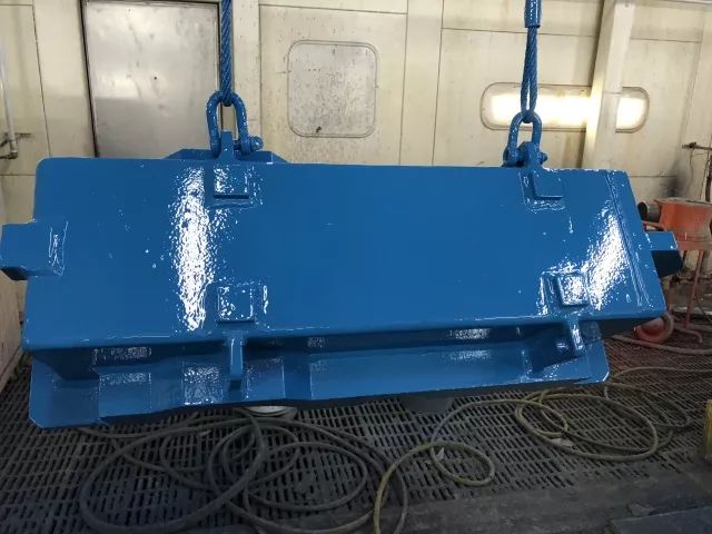 首批次無溶劑涂料在振華南通傳動公司的齒輪箱上進行了施工試點,施工參數設定為底漆80μm,中漆150μm,面漆80μm,在不改變生產線現有單組份泵設備參數的情況下,順利的完成了三道涂料的施工。涂料施工混合壽命超過2小時。同時,以其無刺激性涂料施工味道的優勢獲得了施工工人的好評和認可。整體重防腐涂層體系已經通過實驗室1500小時以上鹽霧測試和150天以上的耐化學品測試,整體性能優異。