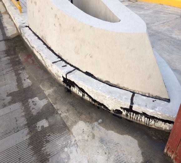 第一道工序:打磨混凝土表面,護(hù)欄表面清理干凈至新鮮混凝土面。將混凝土表面腐蝕掉的、不平整的部分打磨干凈。
