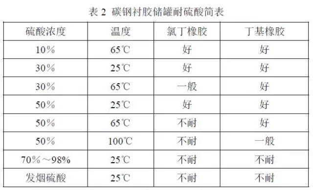 CR和IIR 硫酸碳鋼儲罐的耐硫酸腐蝕性能如表2。